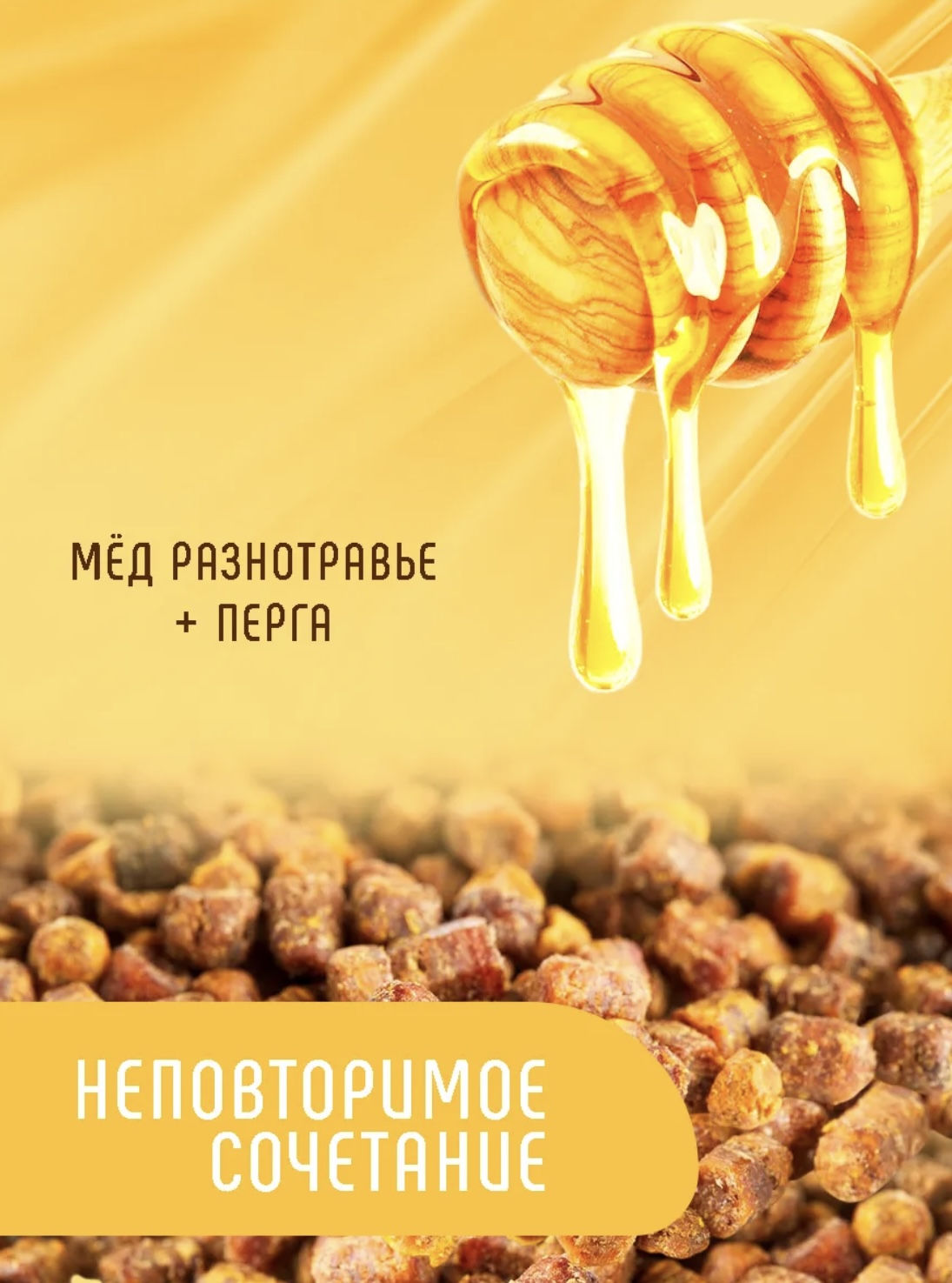 Смесь меда и перги — живая сила улья для иммунитета и восстановления. Этот продукт создаётся без термической обработки, сохраняет все активные вещества и идеально усваивается организмом. Поддерживает иммунитет, энергию, гормональный баланс, сердечно-сосудистую систему и ЖКТ. Действует как биостимулятор: усиливает обмен веществ, повышает устойчивость к стрессу, улучшает состав крови, очищает печень и укрепляет иммунную систему.