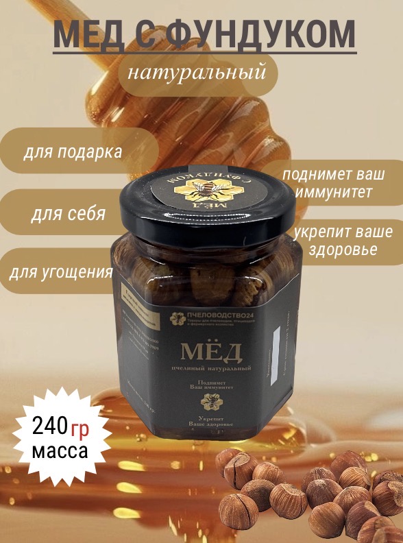 Погрузитесь в богатство природных вкусов с нашим изысканным мёдом с фундуком — настоящим наслаждением для гурманов и ценителей натуральных деликатесов. Нежная, ароматная текстура мёда идеально сочетается с хрустящими, ласкающими вкус кусочками свежего фундука, создавая гармонию сладости и ореховой глубины. Этот вкусный и полезный деликатес не только радует ваше сердце и вкус, но и дарит энергию, укрепляет иммунитет и наполняет вас природной силой. Идеально подходит для утреннего заряда, десертов или в качестве элегантного подарка. Позвольте себе насладиться истинным богатством природы — мёдом с фундуком!