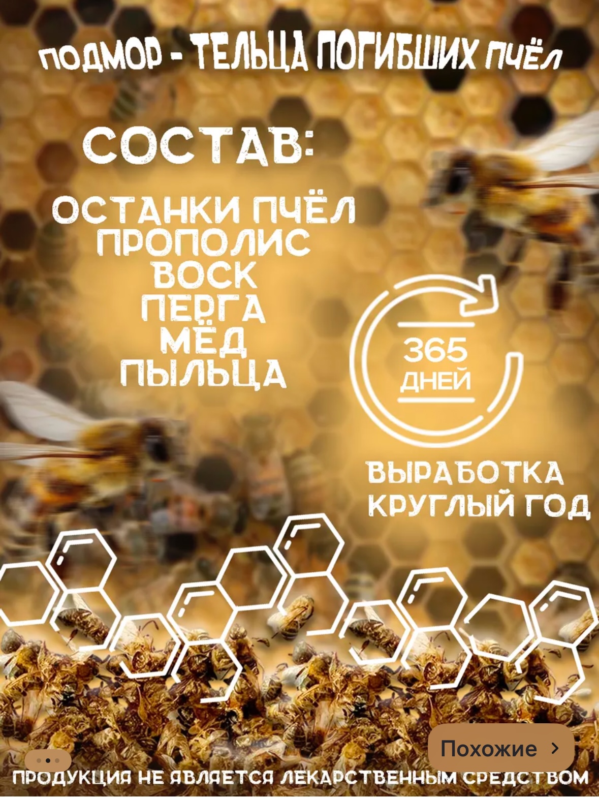 В холодное время года пчела не покидает своего жилища. Когда трудолюбивое насекомое погибает — оно падает на дно улья. Кроме останков пчелы, туда попадают кусочки прополиса, воска, перги — своеобразного углеводно-белкового питания пчелы, состоящего из меда и пыльцы. Эта миксмесь из множества полезных компонентов, скапливающаяся в улье, и называется подмором. Кстати, пчелиных экскрементов в подморе нет: аккуратистка-пчела опорожняет свой кишечник только вне улья, на улице.