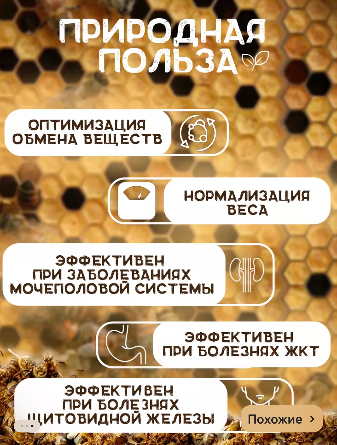 Продукт широко используется в народной медицине. Оптимизируется обмен веществ, нормализуется вес, эффективен при заболеваниях мочеполвой системы: импотенция, бесплодие, цистит, пиелонефрит, простатит, аденома, гломерулонефрит. А также применяется при панкреатите, болезнях желудочно-кишечного тракта, диабете, сердечно-сосудистых заболеваниях, катаракте, глаукоме, болезнях сосудов головного мозга, аллергии, астме, кистах, полипах, болезнях опорно-двигательного аппарата. Прекрасно лечатся болезни щитовидной железы.