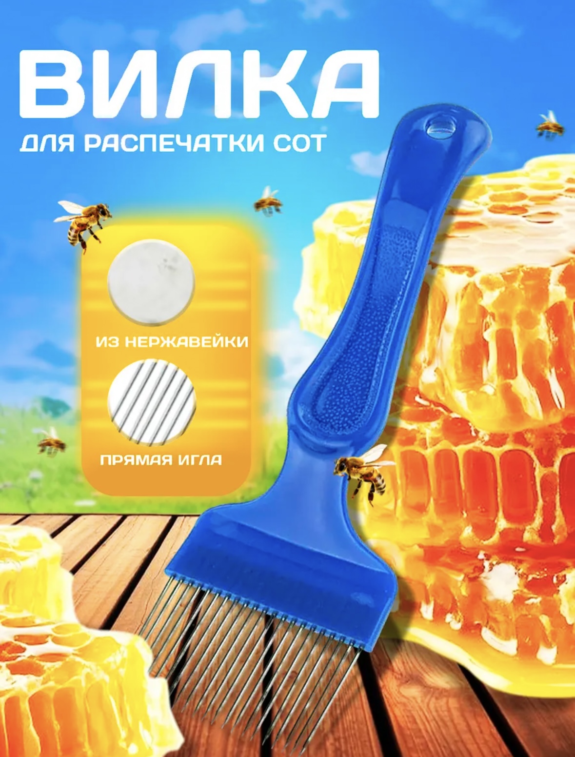 Среди доступного инвентаря для распечатки сот и добычи меда наиболее популярными у пчеловодов остаются вилки. Простой и удобный в использовании этот инструмент позволяет пчеловоду аккуратно распечатывать печатки и не повреждать рамки при этом процессе. И если пасечные ножи могут не достать до каких-то элементов печатки или же это сделать крайне неудобно, то для вилки труднодоступных мест на сотах просто не существует. Вилка предназначена для распечатывания медовых сотов и удаления крышечек трутневых ячеек.